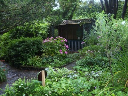 Above is a photo of this gorgeous sanctuary, with the poem, she believes herself, propped up underneath the green sign in the shelter. she believes herself is one of my shorter poems and is a bit different than others in the group of 12. Here’s the poem as it appeared on this blog back in September 2010, with a slightly longer title and different spacing than occurs on the Words Divinely Wrought version.