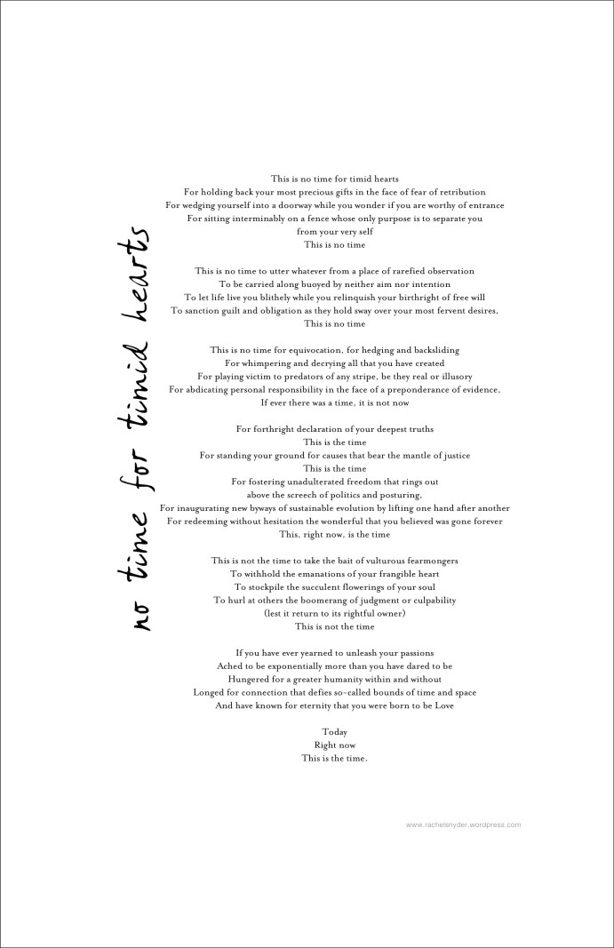 No Time for Timid Hearts (by Rachel Snyder) was selected as one of the 12 poems in the Words Divinely Wrought Global Poetry-Share: